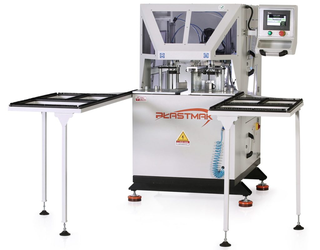 - Limpia automáticamente las rebabas formadas en las esquinas interiores y exteriores y en las superficies inferior y superior debido a la fusión en el proceso de soldadura de esquinas en los marcos de perfiles de PVC, con alta precisión y a alta velocidad.